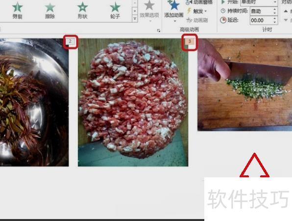 完成上述设置后,可调整PPT中图片的播放顺序。放映幻灯片时,图片将按设定顺序逐一出现,效果所示。