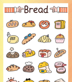 卡通造型面包绘画教程,通过创意设计展现面包的趣味性,适合儿童或喜欢卡通风格的绘画爱好者。