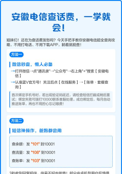 查询电信话费可通过多种方式,如发送短信至10001、登录中国电信网上营业厅或拨打10000客服热线,具体方法可能因地区略有差异。