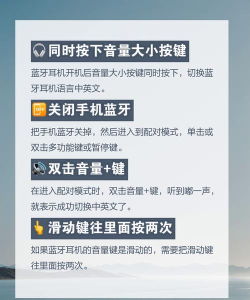 通用蓝牙耳机中英文切换通常涉及长按音量键或多功能键,部分型号支持特定按键组合操作,具体方法因品牌而异。