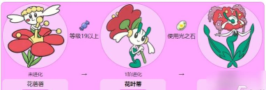 花叶蒂可通过使用光之石进化为花洁夫人,是宝可梦中常见的进化方式之一。