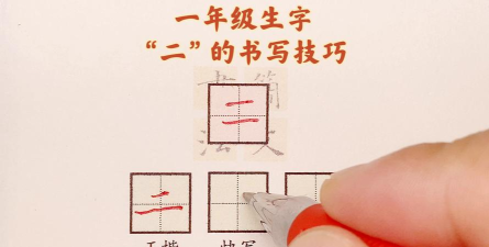 “二”字的笔顺为:横、横、竖。在田字格中,第一横短,第二横长,竖画居中。注意横画平行,竖画垂直,结构方正。