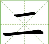二字结构简单,由两横一竖组成,整体方正,书写时需注意横画长度和竖画位置的协调。