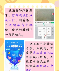在iPhone微信中,换行操作需长按输入框,弹出换行选项后点击即可;安卓版本可能支持半屏聊天直接换行。