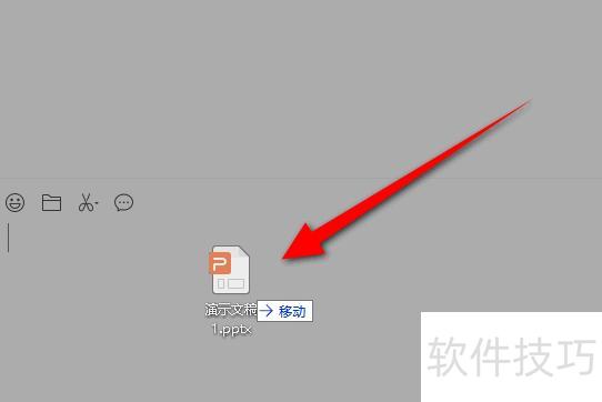 按住要发送的PPT文件,拖至输入框后松开鼠标左键即可。
