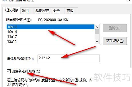 选择现有纸张规格,勾选创建新规格,输入名称即可。