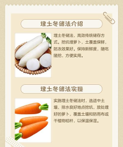 萝卜储存可采用埋土、低温高湿密闭或冷冻方法,避免与土豆同放,防止发芽或变质,确保一冬天新鲜。