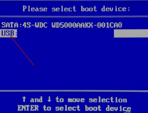 直到看到下图类似的界面,在这里你可以选择从哪个设备启动你的电脑,按键盘上的上下箭头选择你的USB设备,通常是你U盘的品牌名称,按输入确认