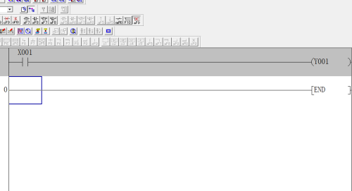 第六步:右侧需要输出端子接收,不能为空。默认有end结束。这样一个简单的梯形图就绘制完成。