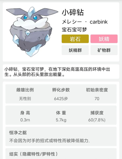 小碎钻具有岩石和妖精属性,其特性为恒净之躯,能够抵抗部分属性攻击。在游戏中的表现与技能搭配需结合具体版本和策略。