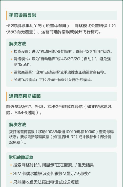 卡2无服务可能由SIM卡故障、APN设置错误或网络问题导致,需检查信号状态及运营商服务情况。