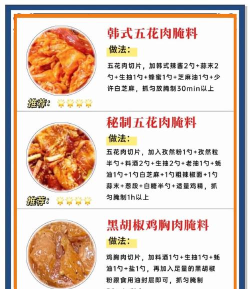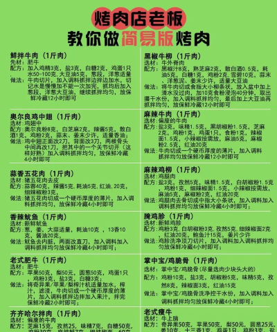 烤肉调味需根据肉质选择酱料,如腌制鸡翅时使用生抽、小葱、鸡精等,牛肉则需不同腌制方法,使烤出的肉鲜嫩多汁,风味独特。