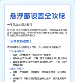 手机悬浮窗设置需进入系统设置,开启悬浮窗权限,具体路径因品牌而异,如华为、OPPO等,部分应用如日杂相机、小熊猫辅助器需手动授权。