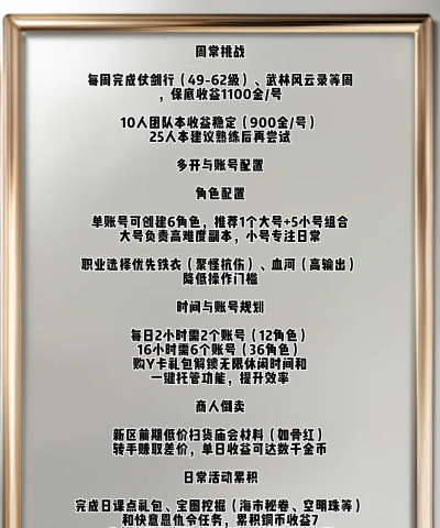 《逆水寒》赚钱主要通过黄金服和十日服,玩法包括押镖、挂机、打副本、刷野外地宫爆装备、参与活动掉落金条等。玩家可在藏宝阁交易铜币或装备兑换现金,最高日赚可达数千元。