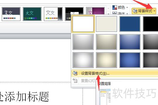 点击背景样式下拉按钮,选择设置背景格式选项。