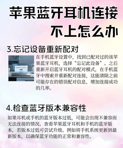蓝牙耳机连不上时,可尝试重启设备、关闭再开启蓝牙、重置耳机或重新配对。若问题持续,检查设备兼容性或更新系统。部分品牌如AirPods需特定操作重置。