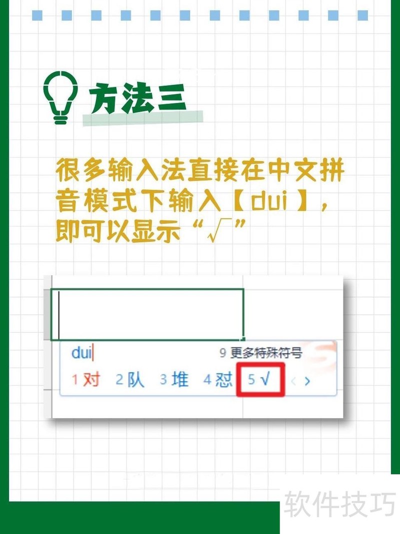 输入dui后选择数字5,即可在表格中显示勾选符号。