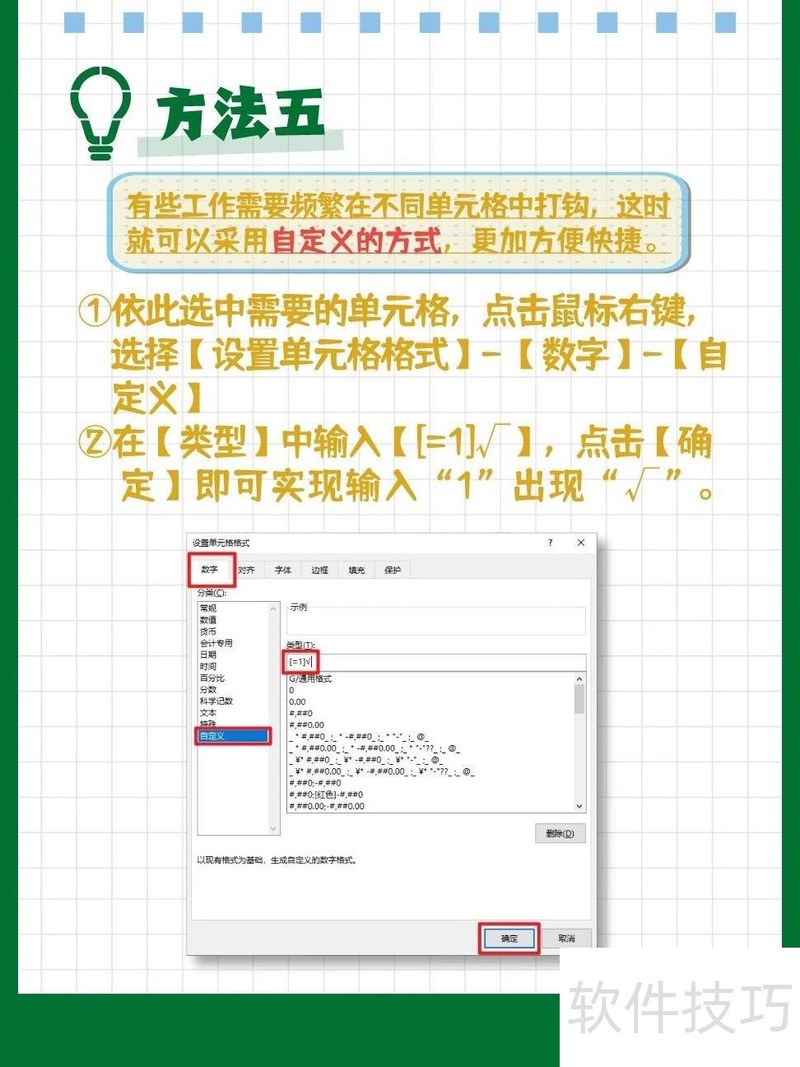 可自定义设置,方便快捷地在不同单元格中频繁打钩。