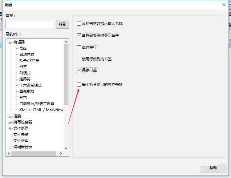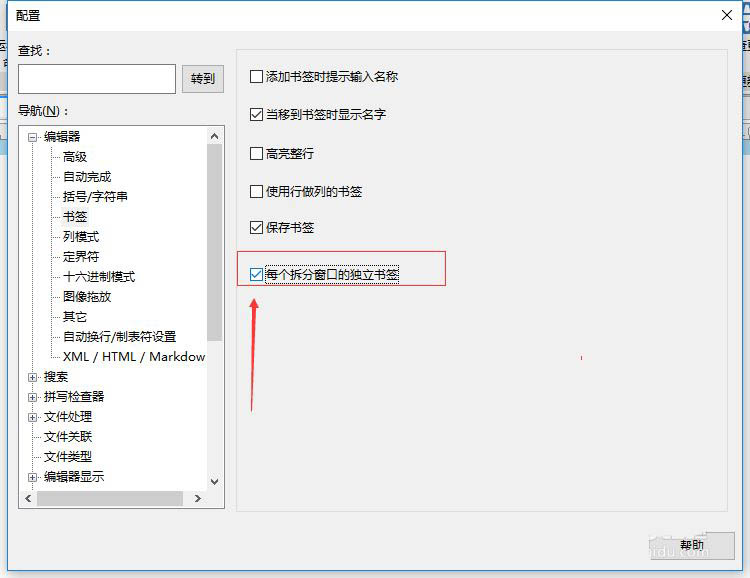 进入到了书签界面中,勾选上每个拆分窗口的独立书签选项