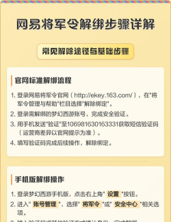 网易将军令解绑方法:首次绑定7天内可快速解绑,登录reg.163.com官网,进入将军令管理页面点击解除绑定,输入序列号和动态密码验证后完成解绑。若超7天,需通过网易大神APP或账号修复中心提交资料处理。