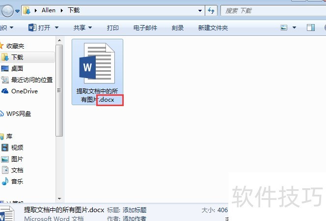 找到需批量提取图片的Word文档,确认其扩展名为格式。