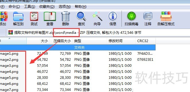 解压后,Word文档内的图片均已提取出来。