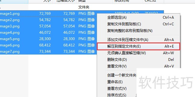 选中文件夹内全部图片,右键点击,选择解压至指定文件夹即可完成操作。