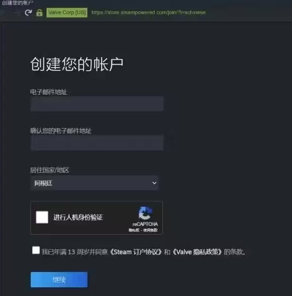 第二步:注册Steam账号