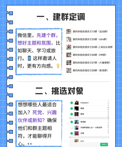 微信群常用于推广活动,如投票、打卡任务等,可通过公众号文章、朋友圈、线下宣传等方式扩大参与范围。