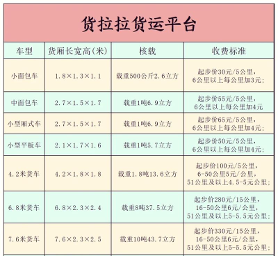 货拉拉平台收费方式