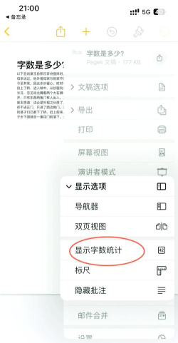 在iPhone备忘录中查看字数,打开备忘录选中笔记,点击右上角“...”菜单,选择“文本大小”即可查看字数和字符数。也可通过第三方应用如WPS进行统计。