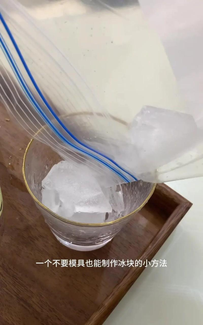 方法:就是利用保鲜盒先冻一大块冰,然后用冰凿把它敲碎,然后放在保鲜盒里存放在冰箱里.用的时候,拿出盒子用夹子夹到杯子里. 这样做的好处就是一次制的量很大(保鲜盒有多大,就能制多少冰),而且长时间存储在冰箱里没有异味(因为保鲜盒是密封的),制造的冰块也比一般的制冰机更好看透明.