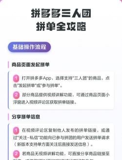 拼多多拼单操作方法涉及用户如何参与拼团活动,邀请好友共同购买以享受优惠价格,具体步骤需参考平台指引。