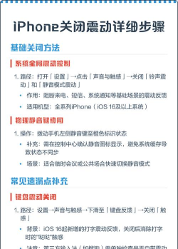 苹果手机关闭震动可通过进入“设置”-“声音”选项,关闭“响铃模式下提供触感反馈”或“振动”总开关,具体步骤因系统版本可能略有不同。