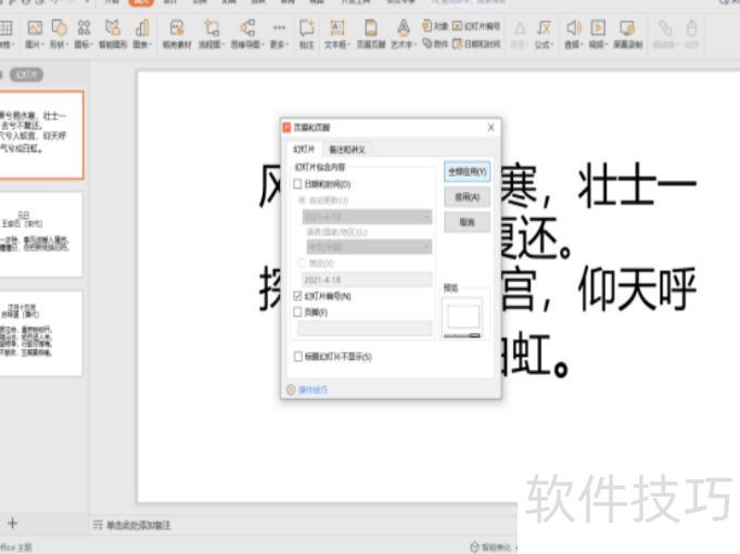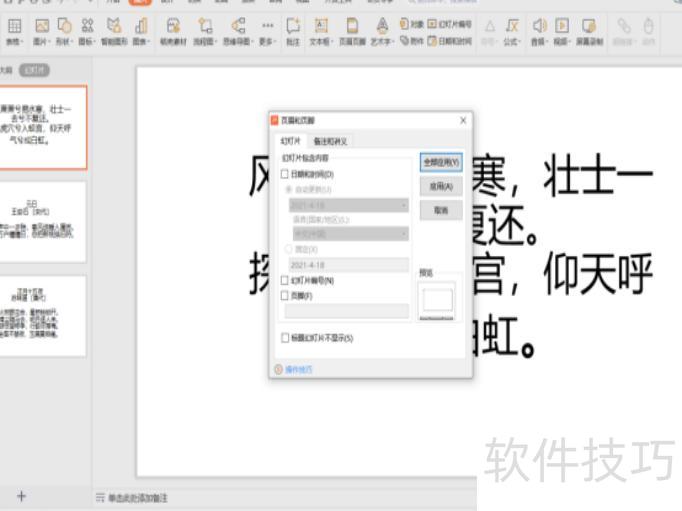 11.3 选择下方幻灯片编号,将弹出页眉页脚操作界面,所示。