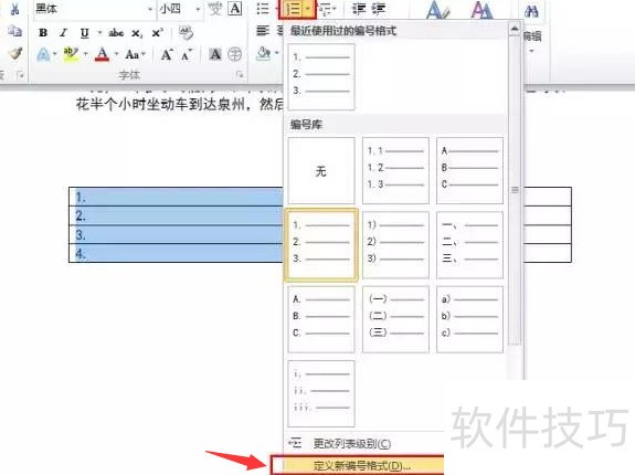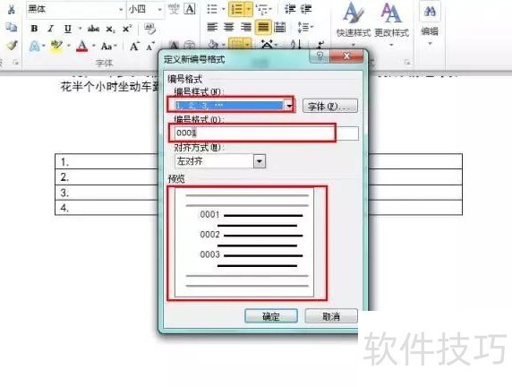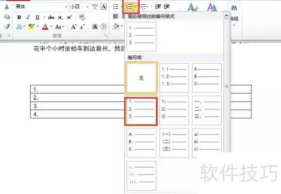 选择1,2,3…编号样式,预览中即可查看设置效果。