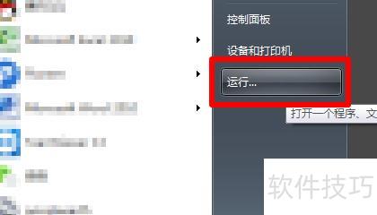 首先点击开始菜单左下角的运行选项。