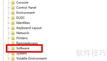 接着在弹出的窗口中,点击展开HKEY_CURRENT_USER下的Software项。