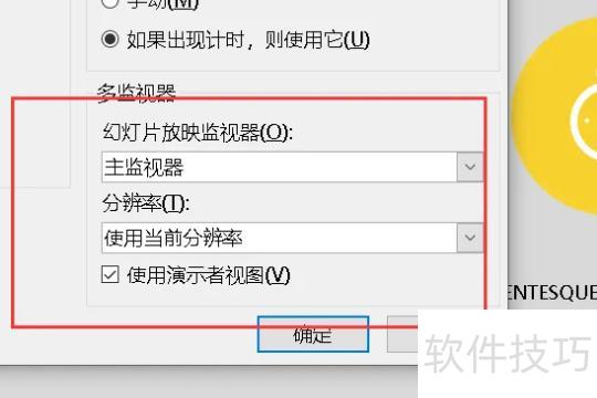 在弹出的对话框中勾选使用演示者视图,然后点击确定按钮。