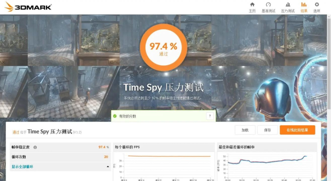 通过标准:≥97% 表示显卡在长时间负载下无性能衰减。