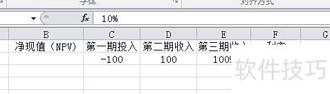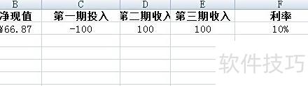 首先明确NPV涉及的三个变量:利率、期数和每期现金流。打开Excel表格,输入数据:第一期投入100,后续两期各收入100,设定利率为10%,总期数为3。