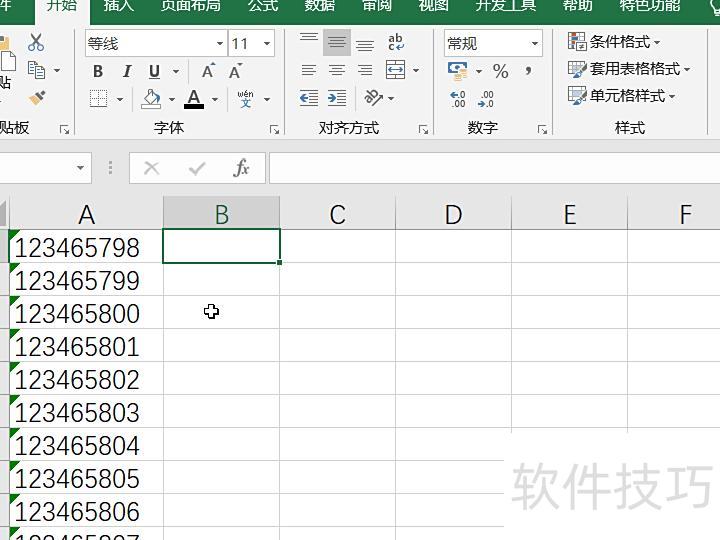 打开Excel表格,输入若干长数字用于演示字符串截取操作。
