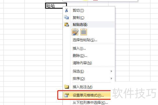 以Excel 2010为例,若需在文字中加下划线,先选中单元格,右键点击,从弹出菜单中选择设置单元格格式进行操作。