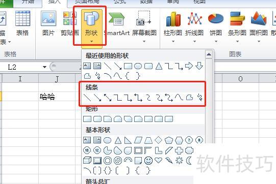 在插入页面点击形状,从弹出选项中选择所需线条类型即可完成操作。