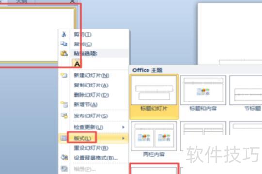 右键点击幻灯片,选择版式中的空白选项,操作详见图示。