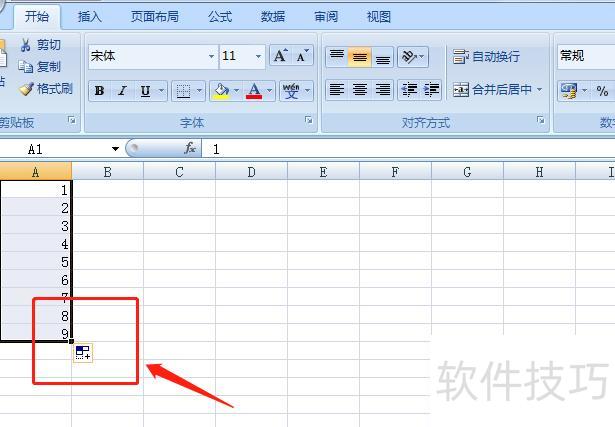 选中数据区域,将鼠标移至右下角,待箭头变为填充柄后,按住左键向下拖动即可自动填充。