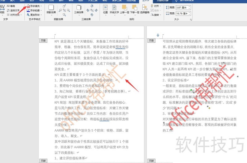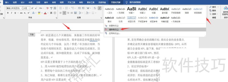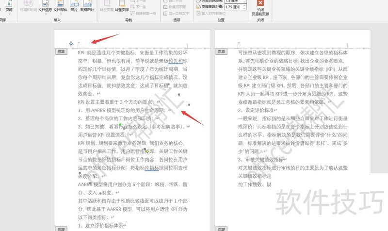点击页眉进入编辑模式,可添加水印,调整字体的大小、位置和颜色。