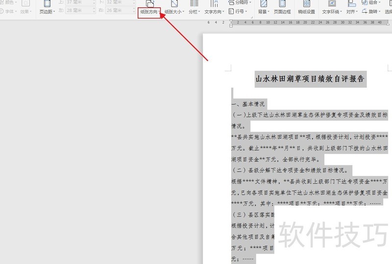 点击纸张方向,按实际需求选择横向或纵向。