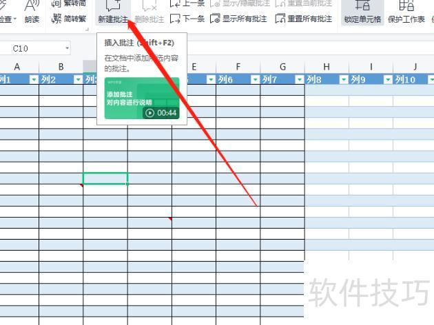 Excel添加批注操作步骤说明