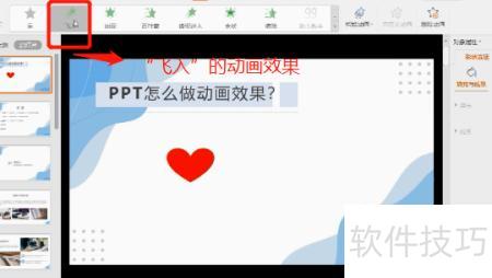 点击PPT顶部工具栏的动画按钮。